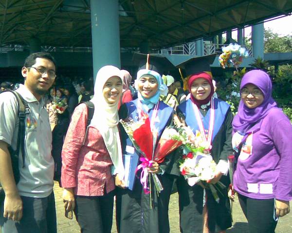 Jam setengah 12 siang akhirnya saya berangkat ke kampus. Saya ke Graha Widya Wisuda, mencari beberapa teman saya yang diwisuda hari itu, mengucapkan selamat pada mereka dan of course melakukan ritual foto bareng. Hehehe… 😀
